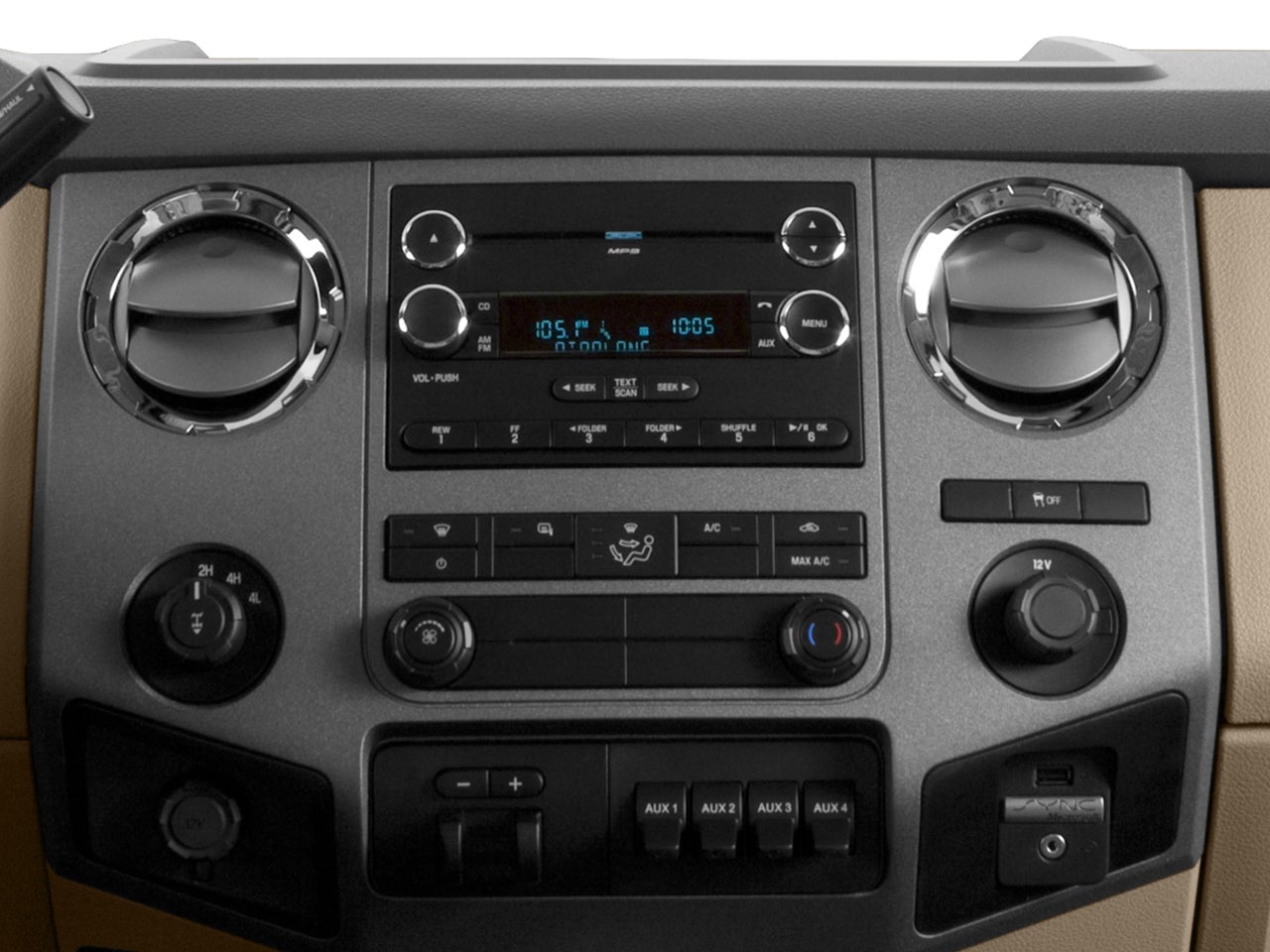 - SYNC w/MyFord Touch & SYNC Services -inc: 911 assist, vehicle health report (VHR), traffic, directions and information services, 1 USB port, AppLink, integrated 8" LCD touch-screen in center stack, IP mounted inverter (110v/150w) upper closable media hub w/2 USB ports, audio/video input jacks, SD card reader, 12 volt powerpoint and 4.2" LCD productivity screen w/compass and menus for gauge setup, trip computer, fuel economy and towing/off-road applications (5 button message control on steering wheel), SYNC Services include traffic, turn-by-turn directions, business search, send to SYNC from MapQuest, news, sports, weather and horoscopes, NOTE: SYNC Services receives a complimentary 1 year prepaid subscription and 20 operator assist sessions