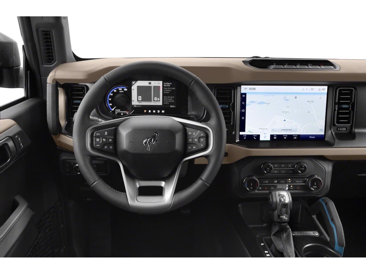 The interior of the 2022 Bronco Wildtrak is equally impressive, with heated leather-trimmed and vinyl bucket seats, a 10-way power driver's seat, and an 8-way front passenger seat. The second-row armrest with two beverage holders adds to the overall convenience and practicality of this well-equipped SUV.